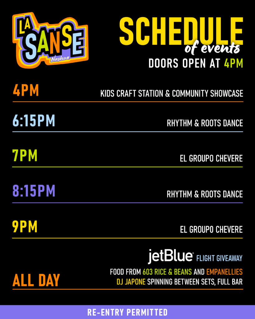 La Sanse Nashua will feature live music, authentic Latin cuisine, and dynamic visual art. The acclaimed 12-piece salsa band El Grupo Chevere will headline the evening, joined by talented local Latin artists. Guests can also enjoy flavorful dishes from local restaurants and experience a special performance by a local dance group. La Sanse will shine a spotlight on the cultural roots and traditions of Nashua’s Latin community.